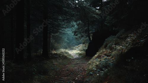 Obraz premium A wild forest path leading into darkness