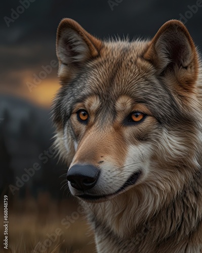 © Phongphan, Obraz premium A wild gray wolf, a canine predator with thick fur, stands alert in a winter forest