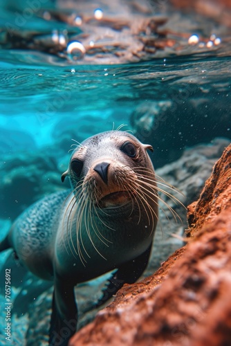 © Landscape Planet, Fototapeta premium a wild seal swimming underwater in a body of water