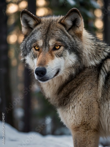 Fototapeta premium a wild wolf in a cold forest
