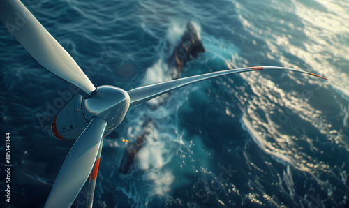 © Sawyer0, Obraz premium A wind farm in the open sea is a technologically advanced solution in the field of renewable energy sources.