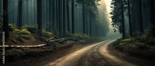 Fototapeta premium A winding dirt forest road.