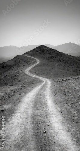 © Udin, Fototapeta premium A winding dirt road ascends a barren hilltop under a pale sky