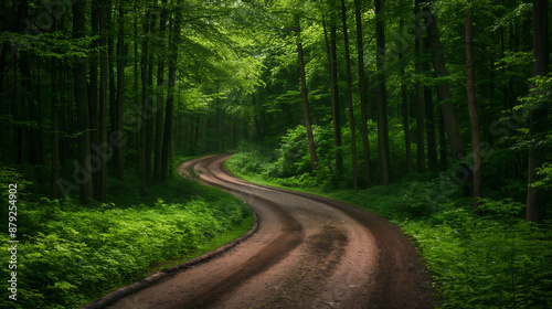 © BB_Stock, Fototapeta premium A winding dirt road through a lush forest