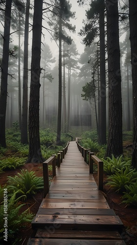 Obraz premium A winding forest path meanders through green woods, inviting a peaceful walk...