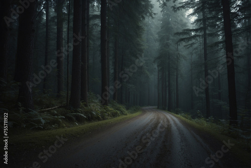 Fototapeta premium A Winding Forest Road on a Misty Day