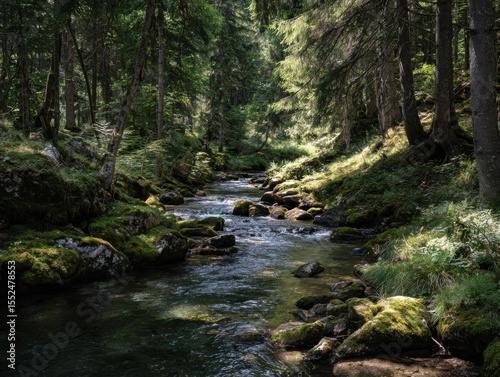 © Istri, Obraz premium A Winding Mountain Stream Through An Evergreen Forest