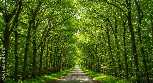 © Mhmmd_R, Obraz premium A winding path or road through a green forest landscape, inviting a walk in nature during spring or summer