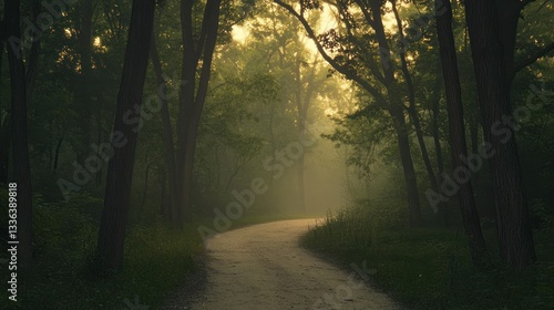 Fototapeta premium A winding path through a mysterious forest shrouded in morning mist