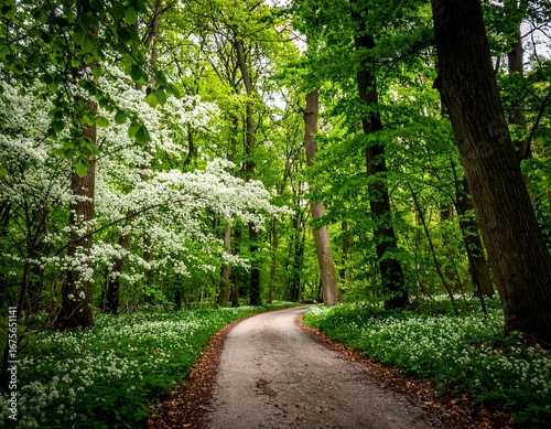 © Ojo, Obraz premium A winding path through a springtime forest