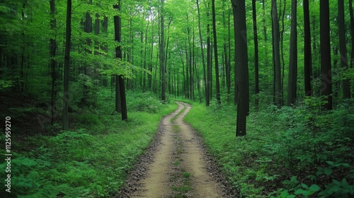 Obraz premium A winding pathway invites exploration through dense woods, surrounded by lush...