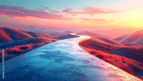 Fototapeta premium A winding road through a fantasy mountain landscape symbolizing journey,...