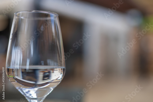 Obraz premium A wine glass is filled with water and stands on the table