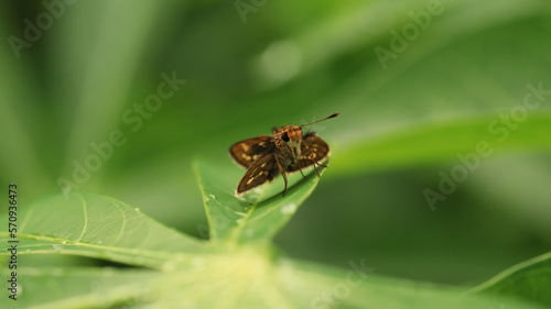 © Aresya, Fototapeta premium a winged beetle with its tiny antennae is perched on a green leaf
