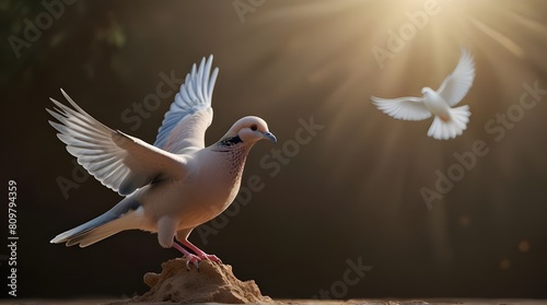© Waqar, Fototapeta premium A winged dove with that symbolizes.generative.ai