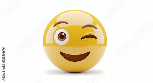Fototapeta premium A winking yellow emoji with a happy expression isolated on a white background...