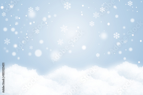 © Oracha, Naklejka premium A winter background with soft snowfall and delicate snowflakes appears on a calm blue background, creating an abstract winter scene that works perfectly as a Christmas background or holiday background