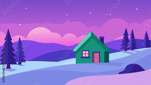 © Kalo, Fototapeta premium A winter landscape with house and trees