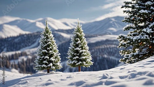 Fototapeta premium A Winter Scene With Snow and Christmas Trees - Landscape