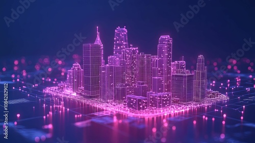 Fototapeta premium A Wireframe Cityscape with Pink Neon Lights