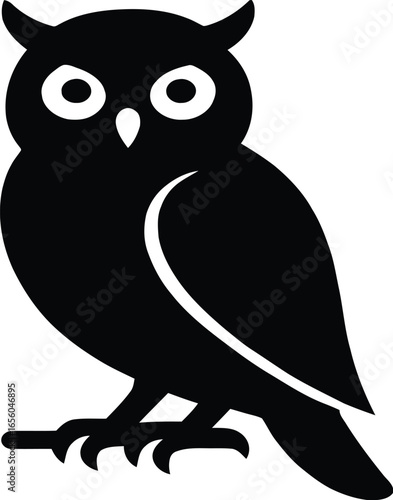Fototapeta premium A wise wild owl character with big eyes perched on a branch in a cartoon vector illustration