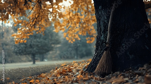 Obraz premium 4. A witch's broomstick leaning against a tree