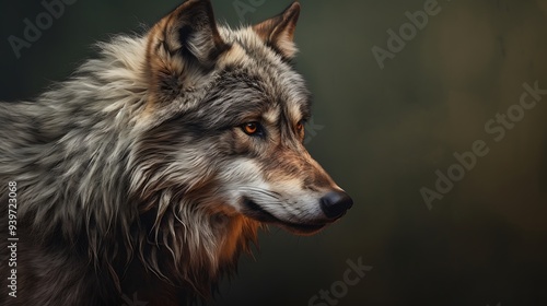 © Huzaifa, Fototapeta premium A wolf captured against a striking and dynamic background scene