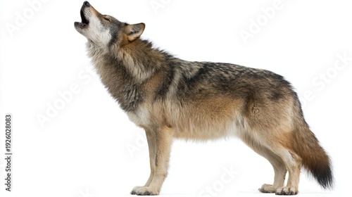© วิทวัส วงษ์หาจักร์, Obraz premium A wolf howling against a white background.