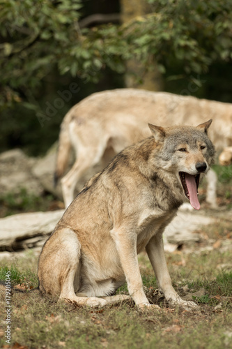 Obraz premium A wolf sits and yawns
