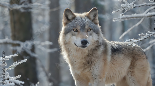 © Masum, Fototapeta premium a wolf standing in the snow in the woods
