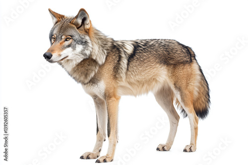 © Nam, Fototapeta premium a wolf standing on a white surface with a white background