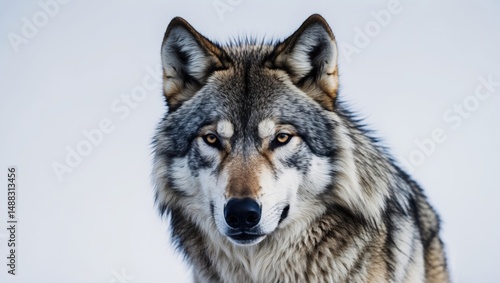 © CryptoCanvas, Obraz premium A wolf stands alone against a white background.