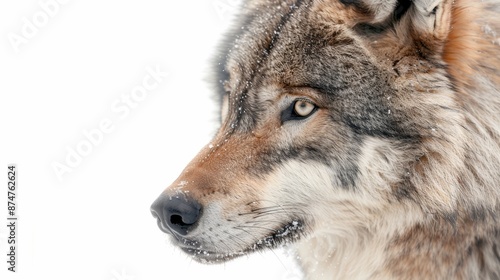 © OZTOCOOL, Fototapeta premium A wolf with a brown nose and brown fur is staring at the camera