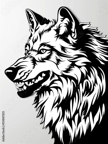 © Bonya Sharp Claw, Naklejka premium A wolf with a menacing look on its face. The wolf's teeth are visible, and it is ready to attack