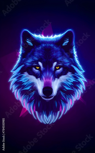 © @ONE Media, Naklejka premium A Wolf with neon effect