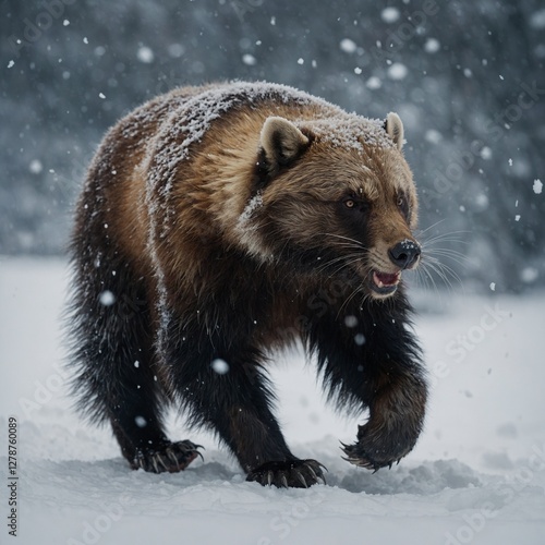 © Maham, Obraz premium A wolverine walking through snow, thick fur, transparent background.