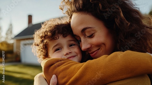 © iuricazac, Obraz premium A woman and a child hugging each other outdoors during daylight.