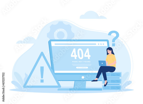 © Kinn Studio, Fototapeta premium A woman are looking for data storage errors, 404 error concept flat illustration