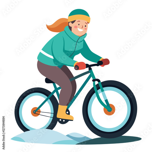 Fototapeta premium A woman enjoys riding her mountain bike equipped with fat tires, navigating...