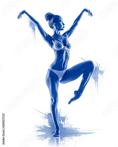 © Bonya Sharp Claw, Fototapeta premium A woman in a blue bikini is dancing in the water. The blue color of the bikini and the water creates a sense of calmness and serenity