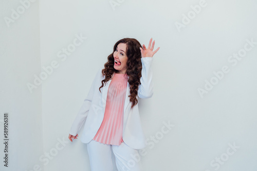 © dmitriisimakov, Fototapeta premium a woman in a business white suit funny comic