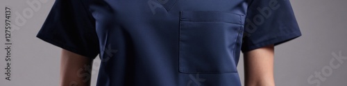 Fototapeta premium A woman is depicted wearing a blue dress with a pocket, ideal for capturing...