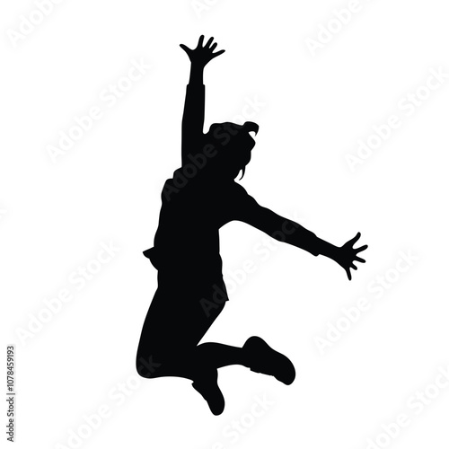 © Dream Is Power, Naklejka premium A woman is jumping in the air. She is wearing a black shirt and black pants