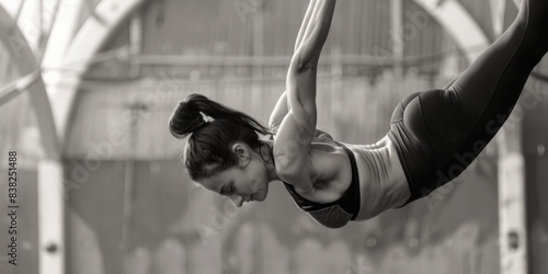 Fototapeta premium A woman performing a trick on a pole, focusing on the movement and flow