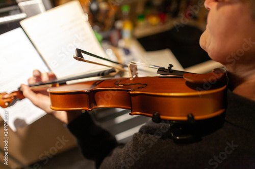 © filmbildfabrik, Fototapeta premium A woman plays a violin in a room