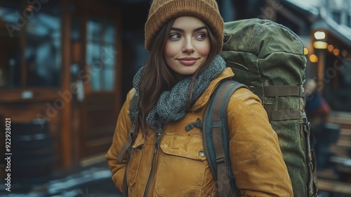 Fototapeta premium A Woman Preparing Her Travel Bag, Getting Ready For Her Next Adventure