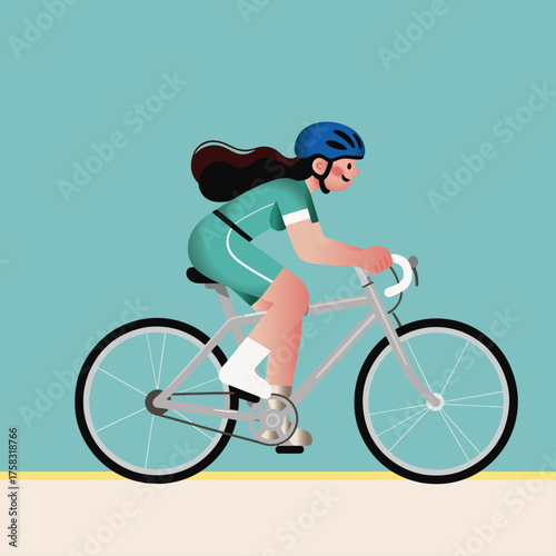 Fototapeta premium A woman riding a bicycle in cartoon vector sports