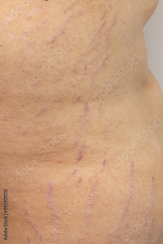 Fototapeta premium A woman's back has a scar that is purple and red