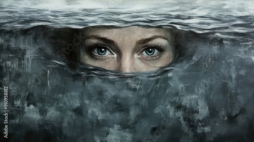 © Penatic Studio, Fototapeta premium A Woman's Eye Peering Through Stormy Waters