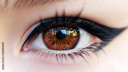 Obraz premium A woman's eye with a black eyeliner and a red eye color. generated using AI